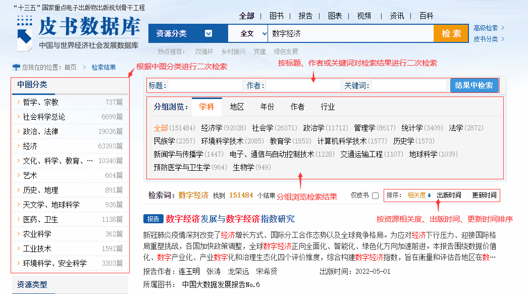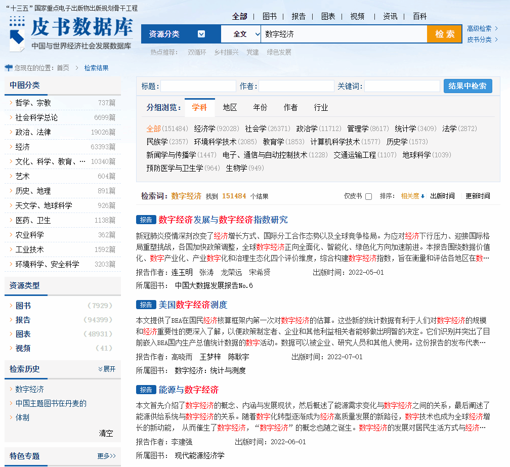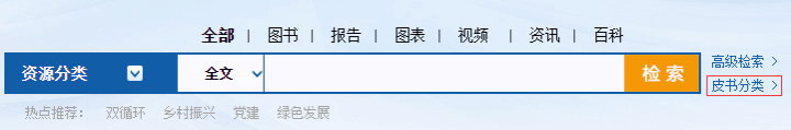 如只关注皮书资源,可点击皮书分类按钮,进入皮书检索专页。