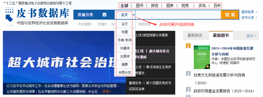 检索方式:皮书数据库高级检索提供高级检索与专业检索两种检索方式。