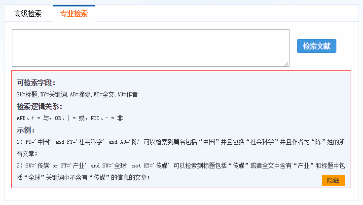 专业检索:提供更准确的信息定位服务,可根据检索说明填写检索内容。