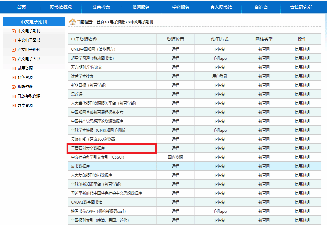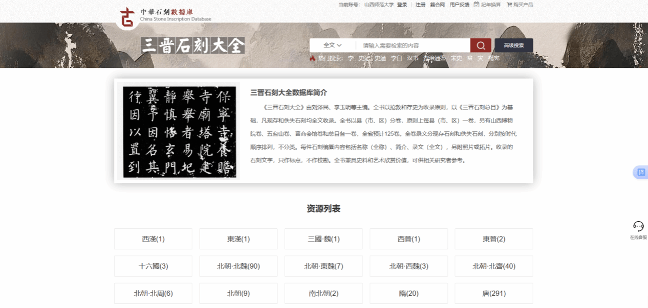 图书馆主页→中文电子期刊→三晋石刻大全数据库