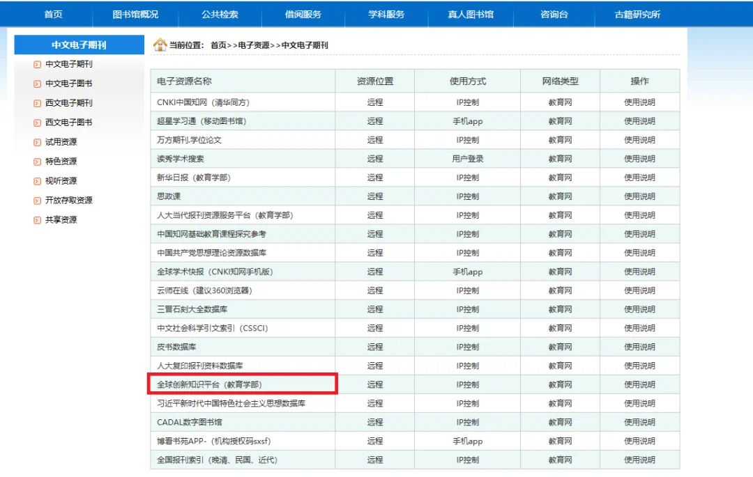 图书馆主页→中文电子期刊→全球创新知识平台