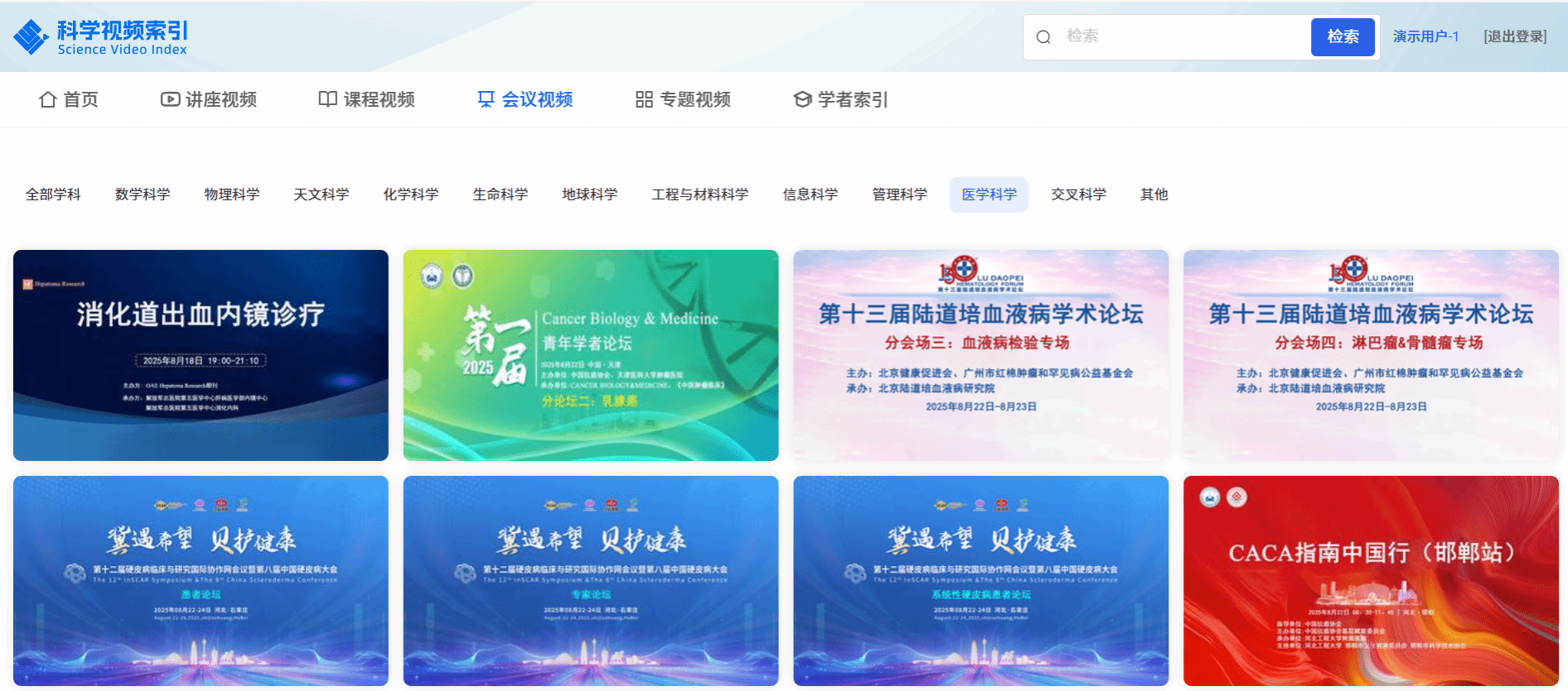 分类检索:用户可按照学科分类、视频类型分类等,查找相关视频。