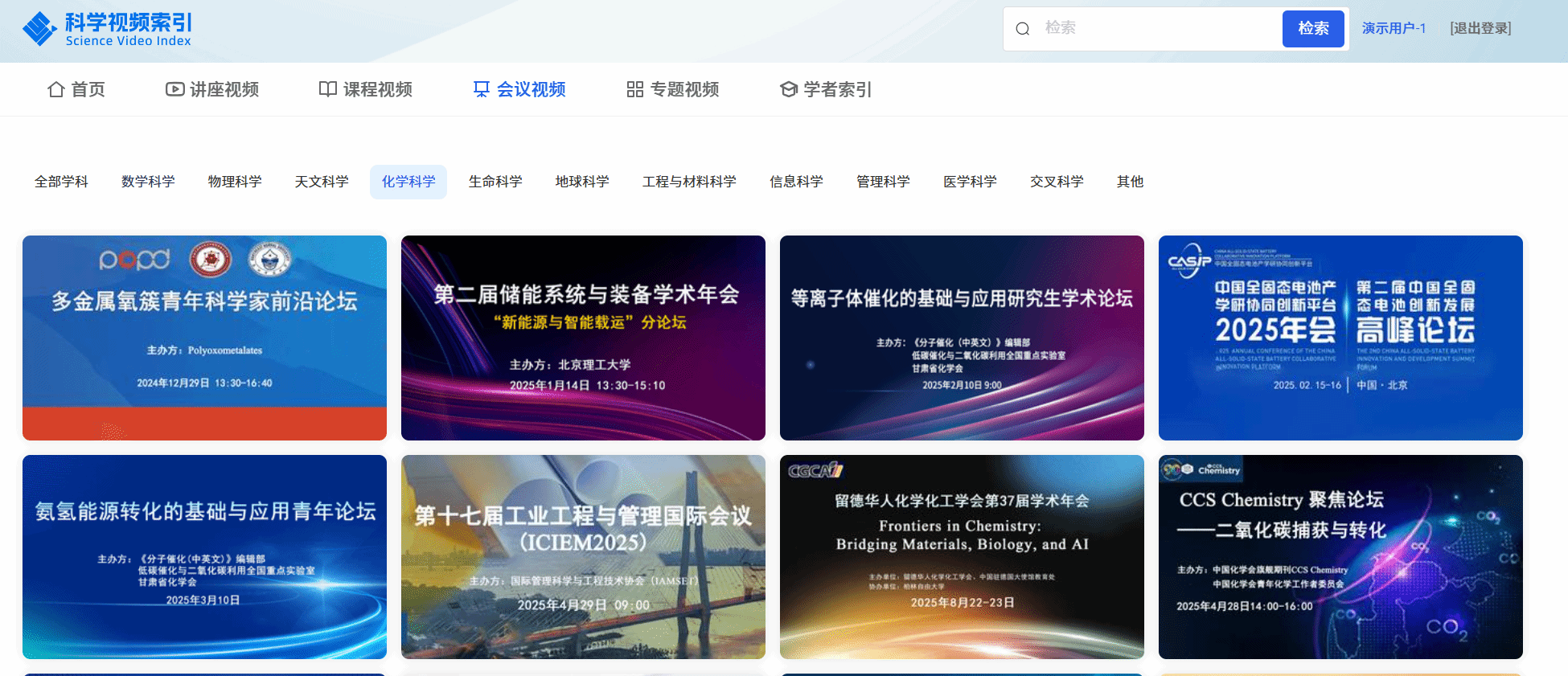 收录化学科学领域学术讲座2200余条,覆盖110余场学术会议,会议视频超1200条。内容覆盖化学工程与工业化学、催化与表面化学、环境化学、能源化学、材料化学等前沿学科,荟萃诺奖得主、国内外院士及顶尖学者2900余人。